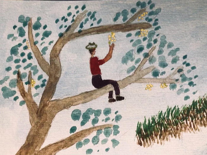 Paint a scene entitled ‘Good Morning’ A childhood memory. It can be for example; A memory of a bird that visited your window each morning…or a greeting from a particular person…the family meeting for breakfast…the scene outside your window (just to name a few).