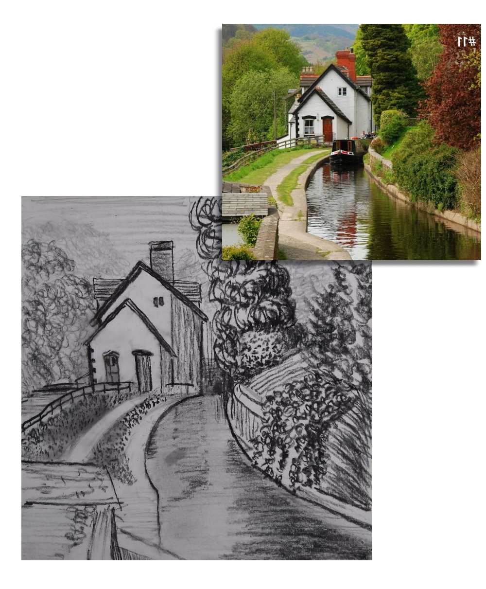 Using various types of lines (as shown in the class demonstration above) try to capture in a drawing one of the four images shown below (just one). Try not to blend the lines with your fingers, just use lines to capture the image.